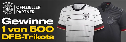 Bevor wir zu den Bwin EM Quoten kommen müssen wir euch auf folgende Aktion hinweisen! Bis zum 23. Mai 2021 werden 500 DFB Trikots unter den Neukunden verlost! Mitmachen lohnt sich, schließlich könnt ihr dabei sogar ganz einfach zwischen dem Heim- oder Auswärtstrikot der deutschen Mannschaft auswählen. Damit bereitet ihr euch perfekt für das Fußball-Spektakel ab 11. Juni vor. Wie ihr vorgehen müsst und welche Bedingungen beim Bwin DFB Trikot Gewinnspiel gelten haben wir hier zusammengefasst: