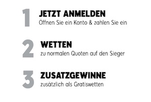 Klingt nach einer gelungenen Aktion? Sehen wir auch so. Somit kann man sich neben dem regulären Einzahlungsbonus noch etwas zusätzliches Wettguthaben generieren!