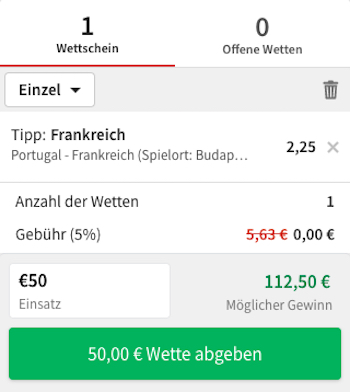 - Sieg Frankreich – Tipico/Bwin/Bet365 Quote jeweils 2.25
