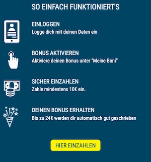 - Kassiert ein Bonusguthaben von bis zu 24€