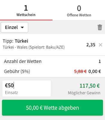 - Sieg Türkei – Beide Bookies mit Quote 2.35